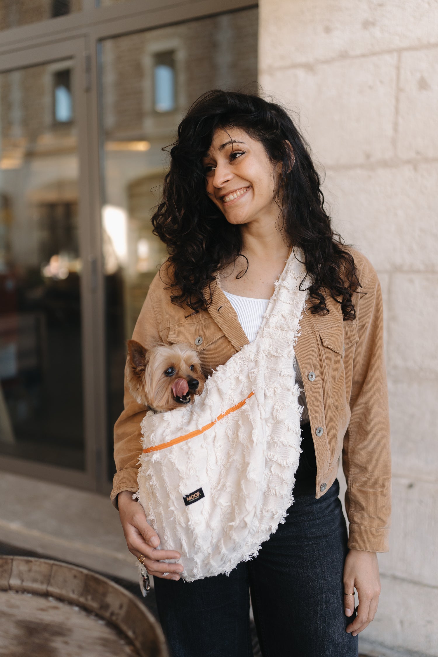 Portez votre chien tout en gardant les mains libres pour le café, les courses et coup de fils aux amis.